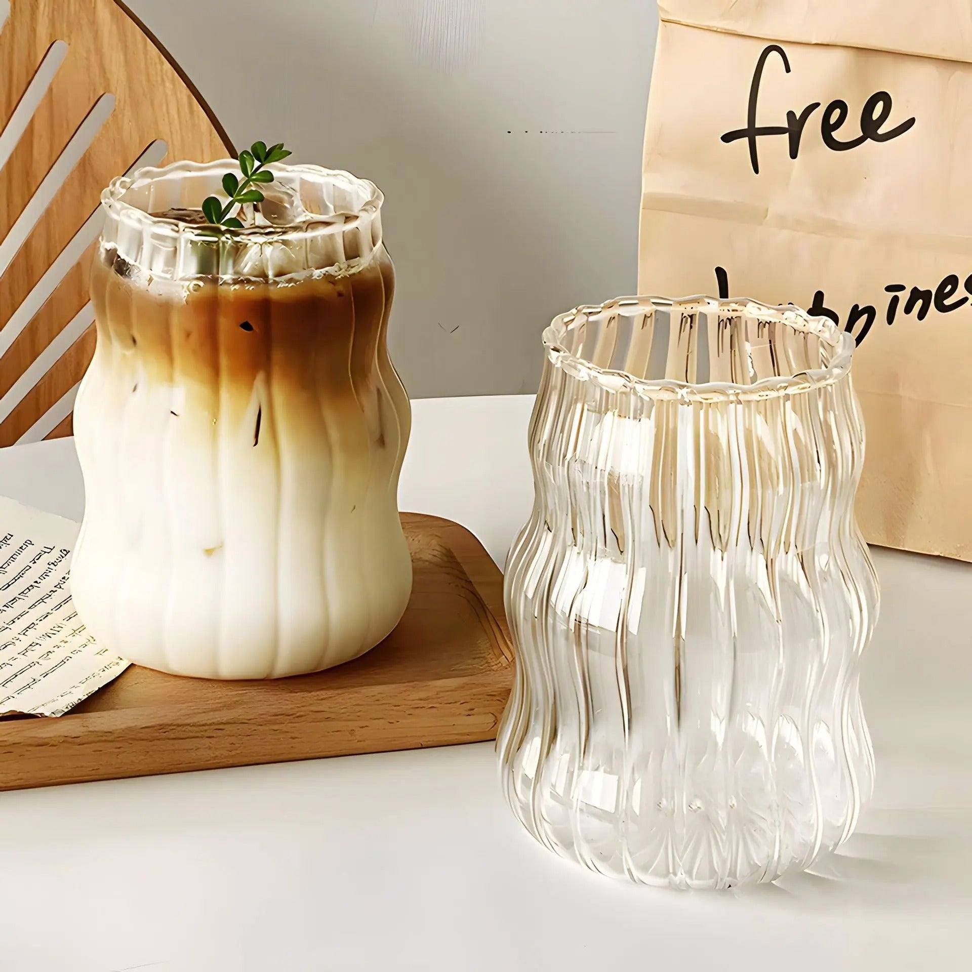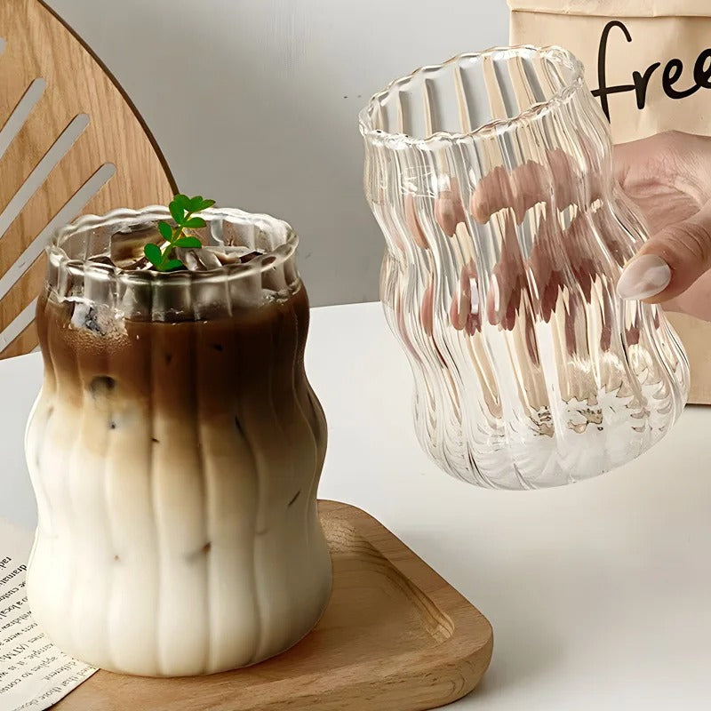 Luminous Design: Rippled glass catches the light beautifully, creating a soft, glowing effect in every sip.